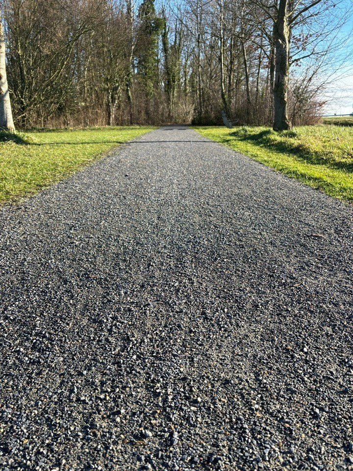 À Iezndieke (IJzendijke), également connue pour son emblématique « Tour Eiffel », nous avons pu rénover/recouvrir une première partie du revêtement semi-pavé perméable existant après des années d'utilisation intensive. Le DurEko-Mix, dont les promeneurs, les coureurs et les amateurs de culture profitent depuis longtemps (environ 10 ans pour être précis), a été doté d'une nouvelle couche supérieure. Nous prolongeons ainsi le confort d'utilisation et le plaisir que l'on peut et doit ressentir chaque jour.