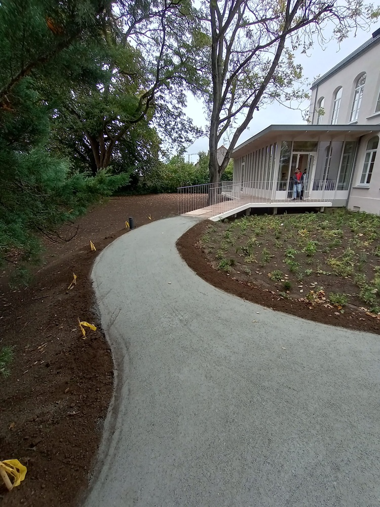 DurEko-mix® est un matériau de revêtement semi-stabilisé durable, composé de diverses roches dures et de liants. Grâce à sa couleur gris foncé, le chemin s’intègre visuellement dans l’environnement naturel. Le produit est développé selon le principe Cradle to Cradle, qui met l’accent sur la réutilisation des matériaux. Ainsi, DurEko-mix® contribue à une construction écologique et circulaire.