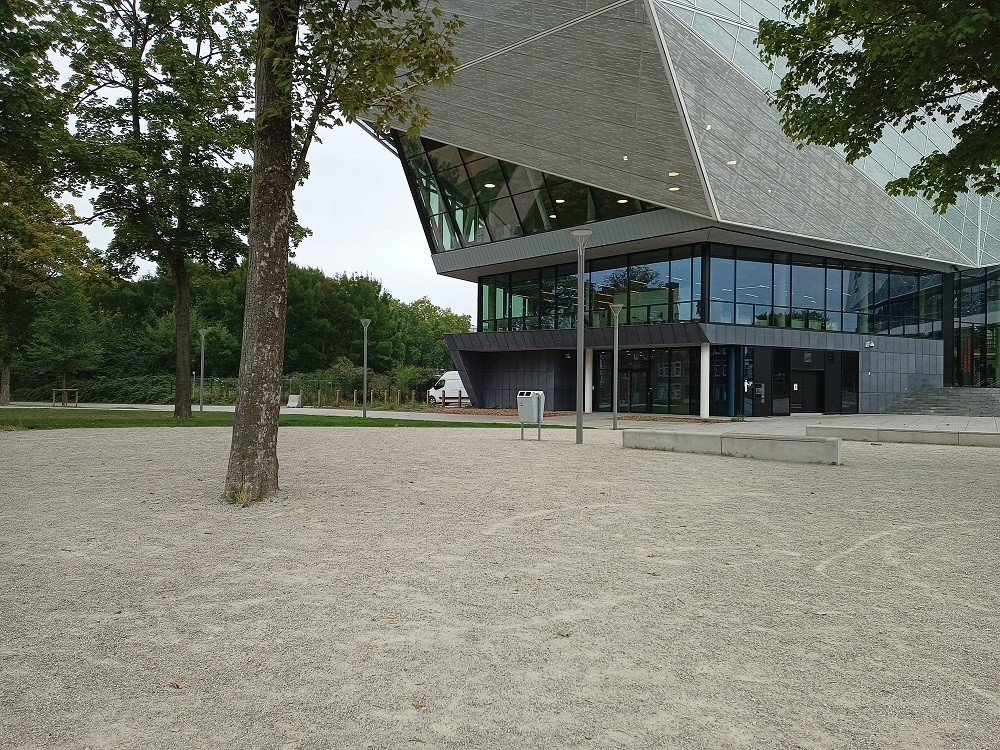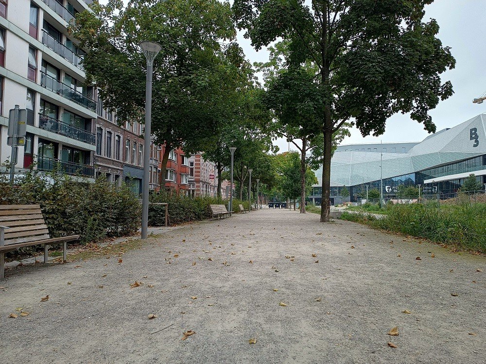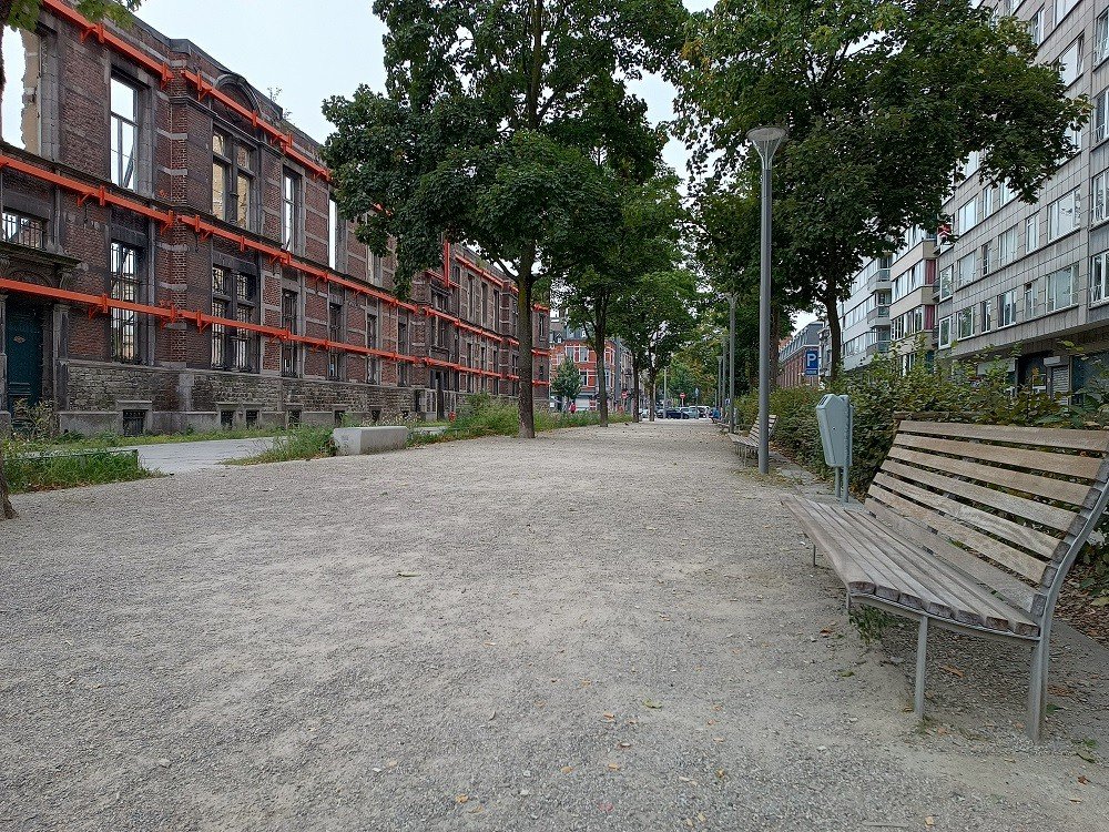 Le trottoir a été posé avec KoMex BIO natural, autour des arbres une version extra perméable de KoMex a été installée.