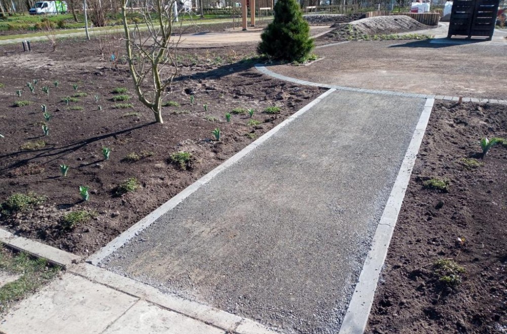 La perméabilité à l'eau de nos chemins semi-pavés permet aux arbres et aux plantes qui poussent le long des chemins d'utiliser de manière optimale la pluie ou l'arrosage. Les concepteurs de la parcelle, Wim Collet et Jef Angelo De Bièvre, ont déjà admiré le résultat final !