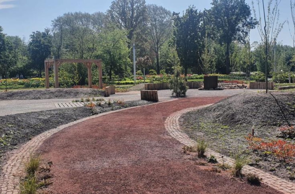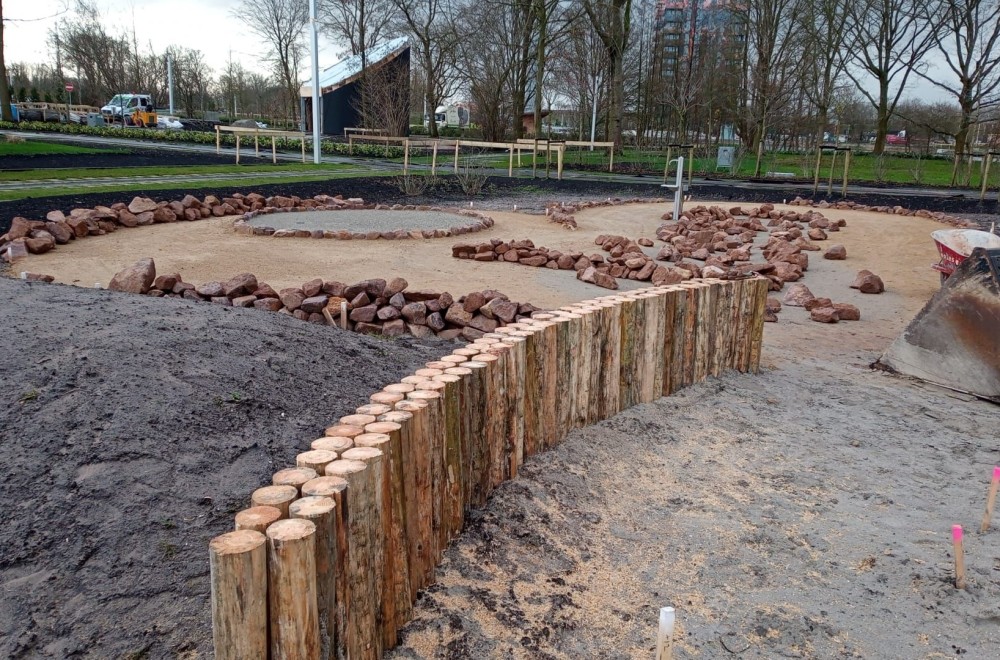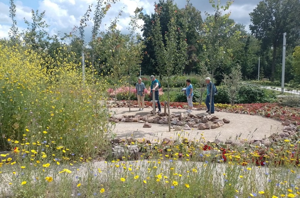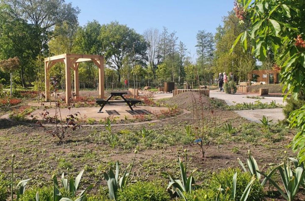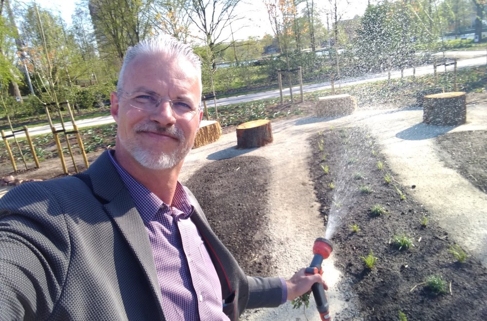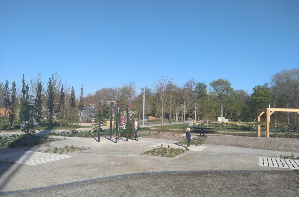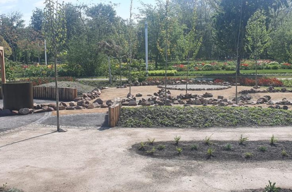Un mois après l'ouverture en avril, la parcelle a pris un vert frais. Après des arrosages fréquents, les arbres et les plantes plantés poussent et s'épanouissent maintenant. Et cela donne de belles photos ! La parcelle vaut vraiment la peine d'être visitée et de s'en inspirer, par exemple pour votre jardin respectueux de la nature ou pour une application durable dans l'espace public.