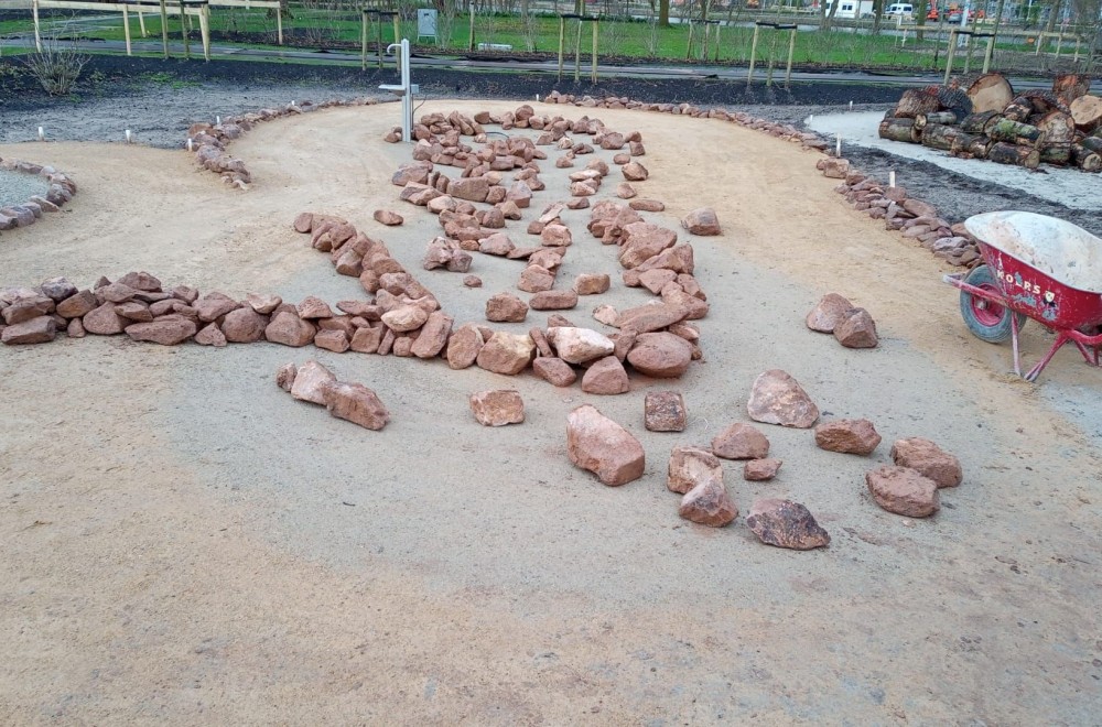 Forêt de feuilles : KoTRec (BIO) et pavés de Porphyre bois inox, roue tracteur (option)